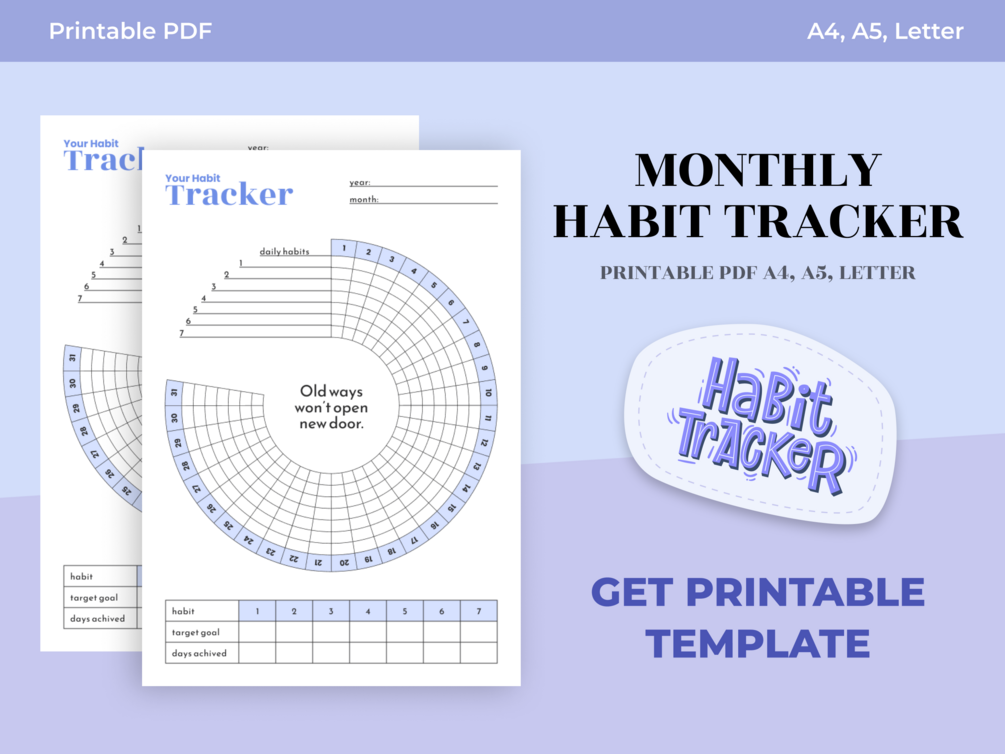 Free Habit Tracker PDF Printable Template, A4, A5, Letter, Monthly Habit tracker, Habit Tracker Design